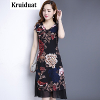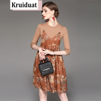 Kruidvat2017夏季新款气质时尚优雅修身中长款大码女装印花两件套连衣裙女