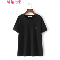 锦铭七玥200斤大码女装胖妹妹夏款新品韩版笑脸贴布圆领套头T恤侣衫