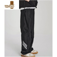 YANXU夏季薄款美式黑色条纹裤子男高街运动裤ins潮牌宽松直筒休闲长裤