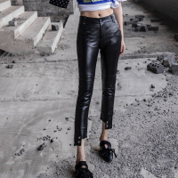 秋高腰加绒黑色外穿打底哑光PU皮裤女九分大码修身小脚铅笔裤子CYLLCY