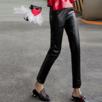 17秋冬新款真皮皮裤女松紧腰全皮打底九分裤外穿绵羊皮小脚铅笔裤