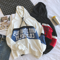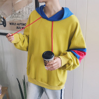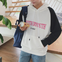 2017秋装新款青少年撞色拼接字母印花连帽衫休闲韩版男生长袖卫衣