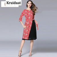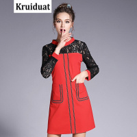 Kruidvat2017风新款春装女装撞色蕾丝拼接大码连衣裙B077红色