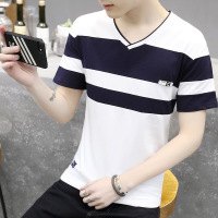 薇侣2017新品新款夏季新款条纹拼接修身短袖V领男装T恤撞色短袖t恤2333
