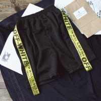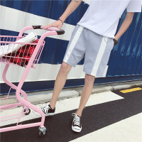 韩国夏装织带拼接潮男休闲短裤日系青年宽松五分裤男士运动中k11