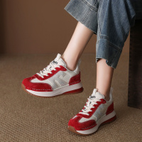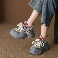 2024春季新款真皮舒适厚底圆头运动休闲鞋女系带轻便摇摇老爹鞋子