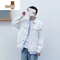 YANXU白色牛仔外套男潮牌街头大码宽松工装夹克2023新款潮流上衣