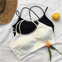 珂依舍2017秋装实拍后背交叉纤维镂空性感裹胸美背可拆卸文胸垫内搭实价