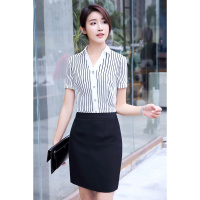 韩版职业装套装女修身短袖教师衬衫新款商务工装美容师职业正装韩范打底酒职业条纹上衣套裙