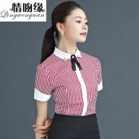 情吻缘优质精选夏季女短袖条纹衬衫OL通勤修身大码工作服女士衬衣职业