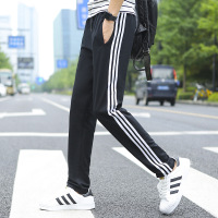 C2潮朝2017秋装新款男士休闲宽松直筒运动裤长裤青少年卫裤青年精神小伙条纹哈伦裤裤子黑色
