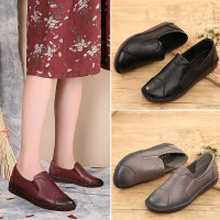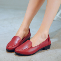 中年女鞋秋季新款妈妈单鞋平底粗跟休闲时尚防滑皮鞋女士浅口单鞋