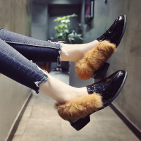 毛毛单鞋女秋冬新款韩版百搭浅口懒人鞋子英伦风小皮鞋粗跟潮