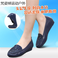 真皮妈妈鞋女式皮鞋春秋季平跟大码女鞋单鞋镶钻软皮豆豆鞋女平底