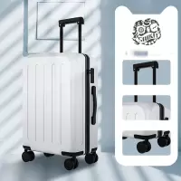 龙云天盾 24寸行李箱白色 多功能一键前开盖USB充电时尚行李箱万向轮商务经典拉杆箱高品质大容量旅行结实耐用