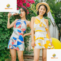 卓勝基度假温泉泳衣情侣款露背连体套装印花海边度假男女式沙滩裙裤遮肚显瘦罩衫蝴蝶女款M男款X