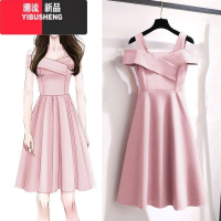 YIBUSHENG温柔显白粉色大摆露背仙女吊带连衣裙性感显瘦海边度假一字肩长裙