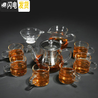 三维工匠耐热玻璃茶具套装家用简约现代功夫泡红茶壶煮茶器日式透明茶杯子 金色亮彩壶10件套+平板排水茶盘(三连送)