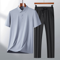 春夏新款男士夏季清凉套装T恤运动长裤薄款透气休闲冰丝速干