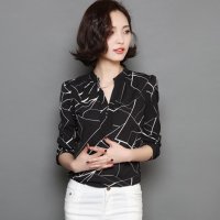 声缎(shengduan)2018春装新款女装韩版宽松V领衬衣长袖雪纺打底衬衫8808送裹胸