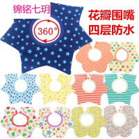 锦铭七玥纯棉婴儿防水围兜宝宝口水巾 卡通360度旋转花朵儿童花瓣围嘴批发