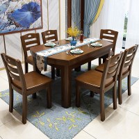 全简橡胶木餐桌家用一桌六椅组合客厅实木餐桌椅