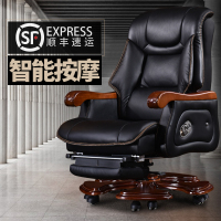 全简实木大班椅可躺按摩椅办公椅电脑椅家用真皮书房转椅牛皮老板椅子
