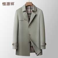 恒源祥男士中长款西装领风衣2024春秋季新款商务休闲纯棉男装外套