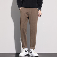 英伦毛呢西裤子男士新款秋冬季潮流宽松直筒保暖休闲西装裤男