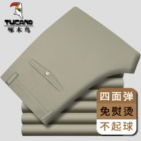 啄木鸟免烫中年男士休闲裤宽松直筒爸爸款弹力裤子西装裤夏季薄款