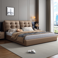意式真皮床轻奢现代简约双人床主卧室小户型软包床家用实木储物床