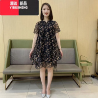 YIBUSHENG季新款短袖连衣裙碎花宽松遮肉韩版娃娃裙子女装时尚大码妈妈装