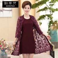 默蒂梵中年女装春夏装套装7分袖外套无袖打底衫中长款蕾丝两件套妈妈装