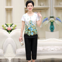 中老年人女装夏装短袖上衣裤子奶奶两件套中年妇女夏季妈妈装套装