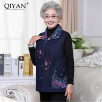 2017中老年服装女装秋装马甲老太太春秋外套牛仔上衣妈妈马夹绣花背心草绿色