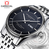 瑞士嘉年华CARNIVAL手表 新款商务系列防水男士全自动机械表 男正装时尚双日历精钢男表 精钢金属腕表8612G