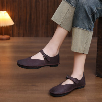 头层牛皮单鞋女2026春季新款复古软底圆头平底百搭透气休闲豆豆鞋