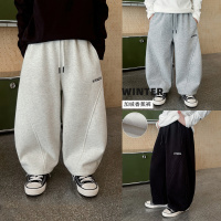 童酷男童冬季新款百搭字母夹标宝宝休闲裤拼接加绒儿童卫裤潮