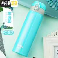 三维工匠保温杯男女家用大容量便携不锈钢水杯学生可爱弹跳盖杯子定制 [经典款]蓝色500(送杯刷/杯套)