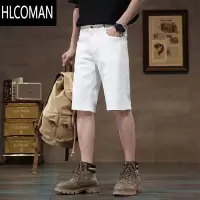 HLCOMAN白色五分裤牛仔短裤男夏季薄款韩版弹力宽松直筒七分休闲中裤大码
