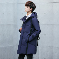 羽绒服男士冬季中长款2024冬装新款连帽潮牌加厚冬季新款连帽羽绒服男商务休闲纯色防寒保暖外套男高端白鸭绒外套可拆卸帽子