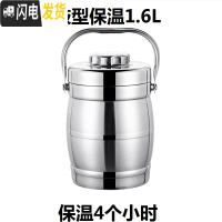 三维工匠304不锈钢保温饭盒学生便当盒3层大容量保温饭桶带盖分格保温提锅 鼓型保温1.6