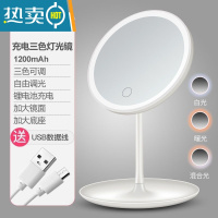 敬平led化妆镜带灯台式网红女补光小镜子ins风宿舍桌面便携小型梳妆鏡 珍珠白充电款三色光灯镜1200毫安便携式用镜