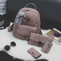 2018秋冬新款复古四件套双肩包韩版学院风pu女士背包书包旅行包潮