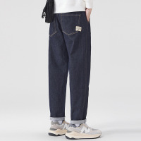 深蓝色复古牛仔裤男 潮流百搭休闲裤 夏季薄款哈伦牛仔裤
