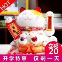 花芙招财猫摆件商店铺开业发财送礼品陶瓷储存钱罐大小号电动摇手