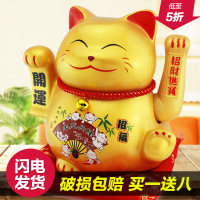 金色电动摇手招财猫摆件大号陶瓷发财猫家居店铺开业创意礼品存钱