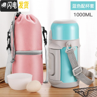 三维工匠1000大容量女户外便携保温壶热水瓶学生水壶可爱简约保温杯外出 蓝色+杯套