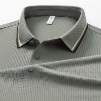 夏季翻领无痕短袖T恤男士竖条纹休闲polo衫男装潮流薄款冰丝半袖