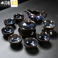 三维工匠功夫茶具套装家用简约窑变天目釉建盏整套中式茶壶盖碗陶瓷泡茶杯 10头窑变盖碗茶具